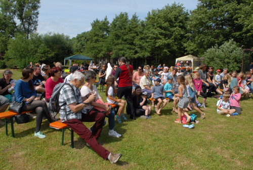 Auch für das leibliche Wohl der Gäste war mit einem Kuchenbuffett, Eisstand sowie Bratwurstgrill gesorgt worden. Die Kinder wurden nicht vergessen: Sie durften an einem Malwettbewerb teilnehmen und Eulenkekse bunt verzieren und natürlich verzehren:). Wenn die Kinder keine Lust mehr auf das Malen hatten, lockte gleich nebenan der Spielplatz und besonders das Hüpfkissen zum Rumtoben.